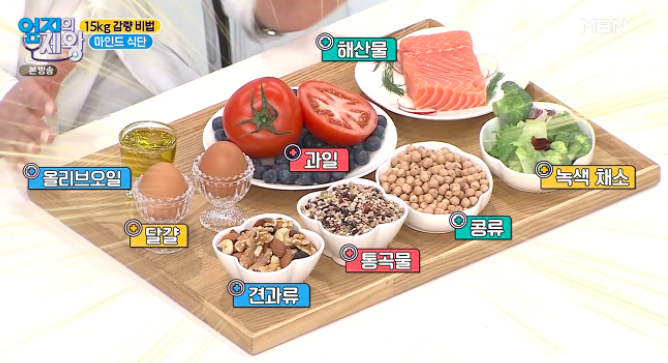 녹색채소, 해산물 , 올리브오일 등이 있습니다.