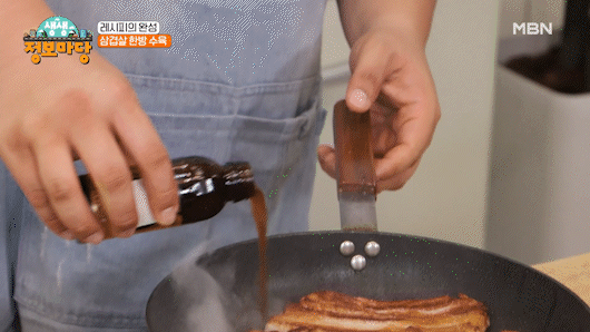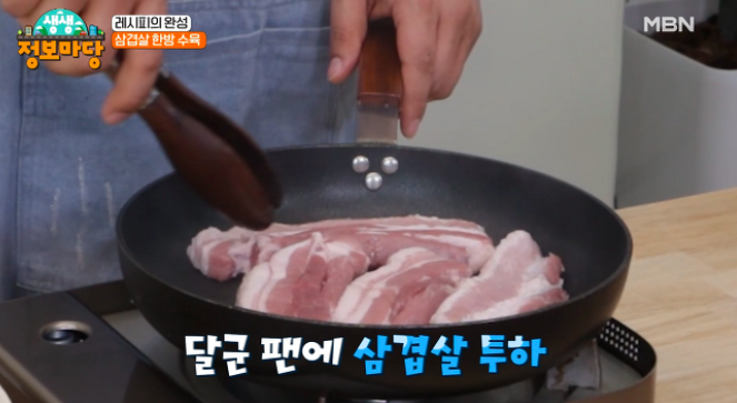 2. 달군 후라이팬에 삼겹살을 넣고,