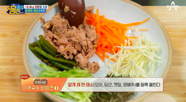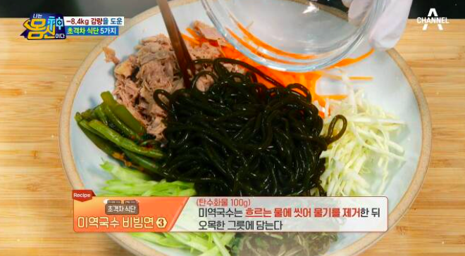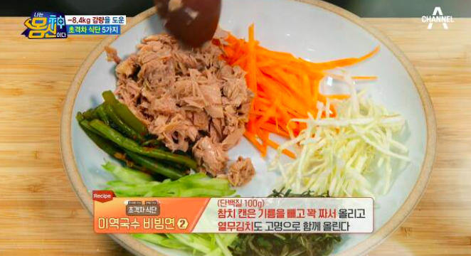 재료 : 미역국수 100g, 참치캔(100g),