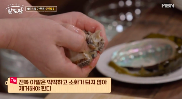 전복 이빨은 딱딱하고 소화가 되지 않아 제거해야 합니다.