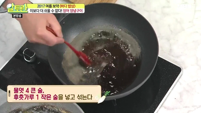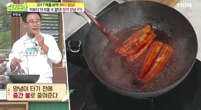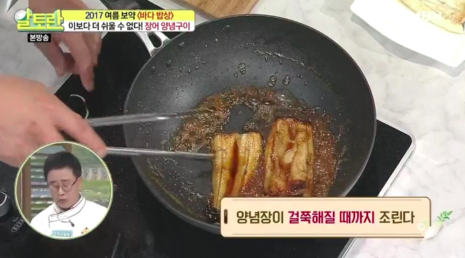 초벌구이 한 장어를 배 부분부터 넣고 졸이다가